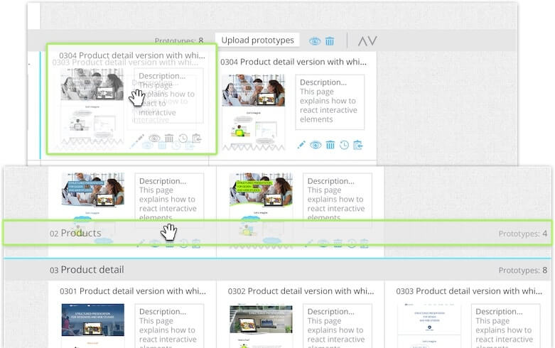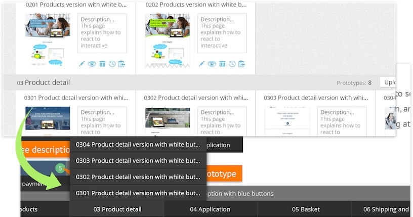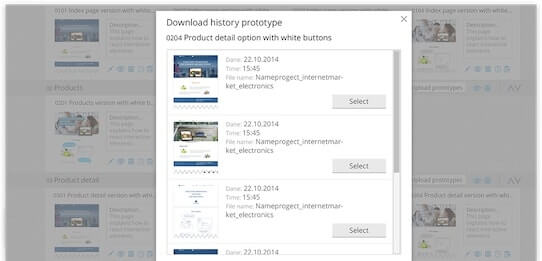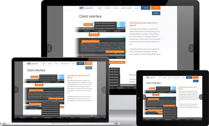 Each project is divided into pages (sections) of the web site; each page can accommodate a large number of layouts. Thus, you can show, for example, the user’s actions on the same page. Furthermore, maquetter allows you to swap folders and individual layouts, and this will be immediately displayed on the client’s side.